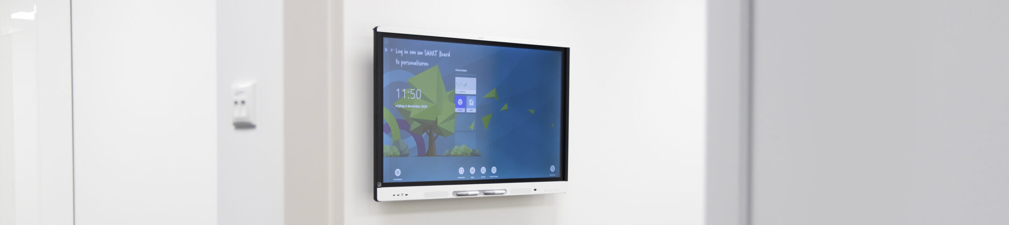 Diverse vergaderruimtes met de SMART Board MX serie, montage wisselt tussen vast aan de wand en montage op een vloerkolom.